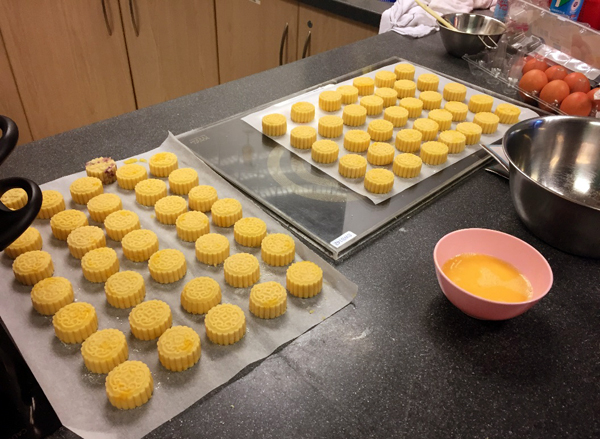 經過大家的努力,準備送給社區獨居老人的月餅做好了