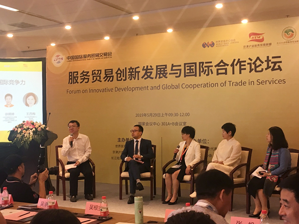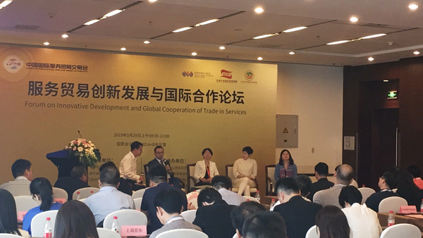 2019年5月29日,世界貿易中心協會、京津滬渝服務貿易聯盟、長江經濟帶服務貿易聯盟在國家會議中心舉辦了2019中國國際服務貿易交易會(簡稱“京交會”)“服務貿易創新發展與國際合作論壇”。