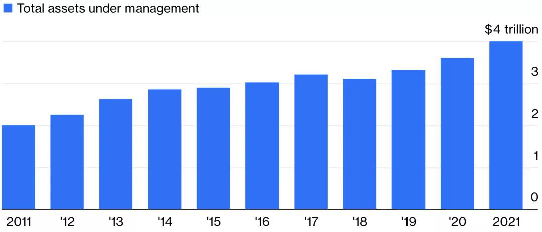 根據HRF的統計,對沖基金的資產規模在2018年出現下滑后,到去年12月底攀升至創紀錄的4萬億美元規模。2021年增加了4000億美元,是十年前的兩倍。