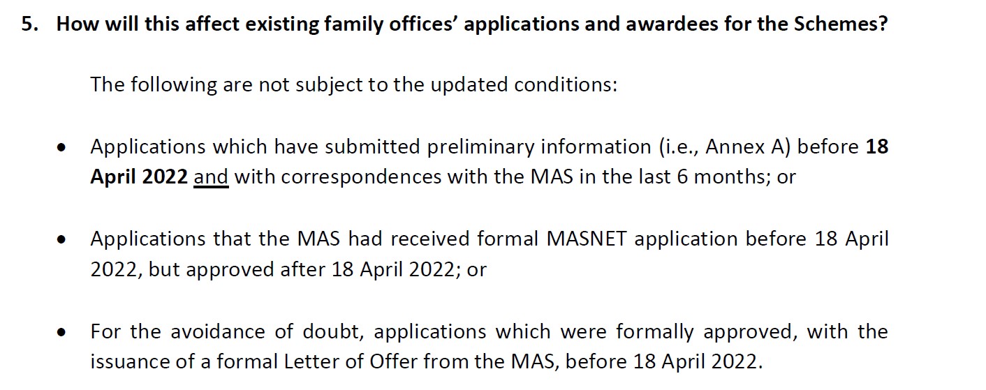 這兩天也陸續收到已辦理完成的老客戶問詢新政策是否會對他們的家族辦公室有影響,以下是新加坡金融管理局的官方回答: